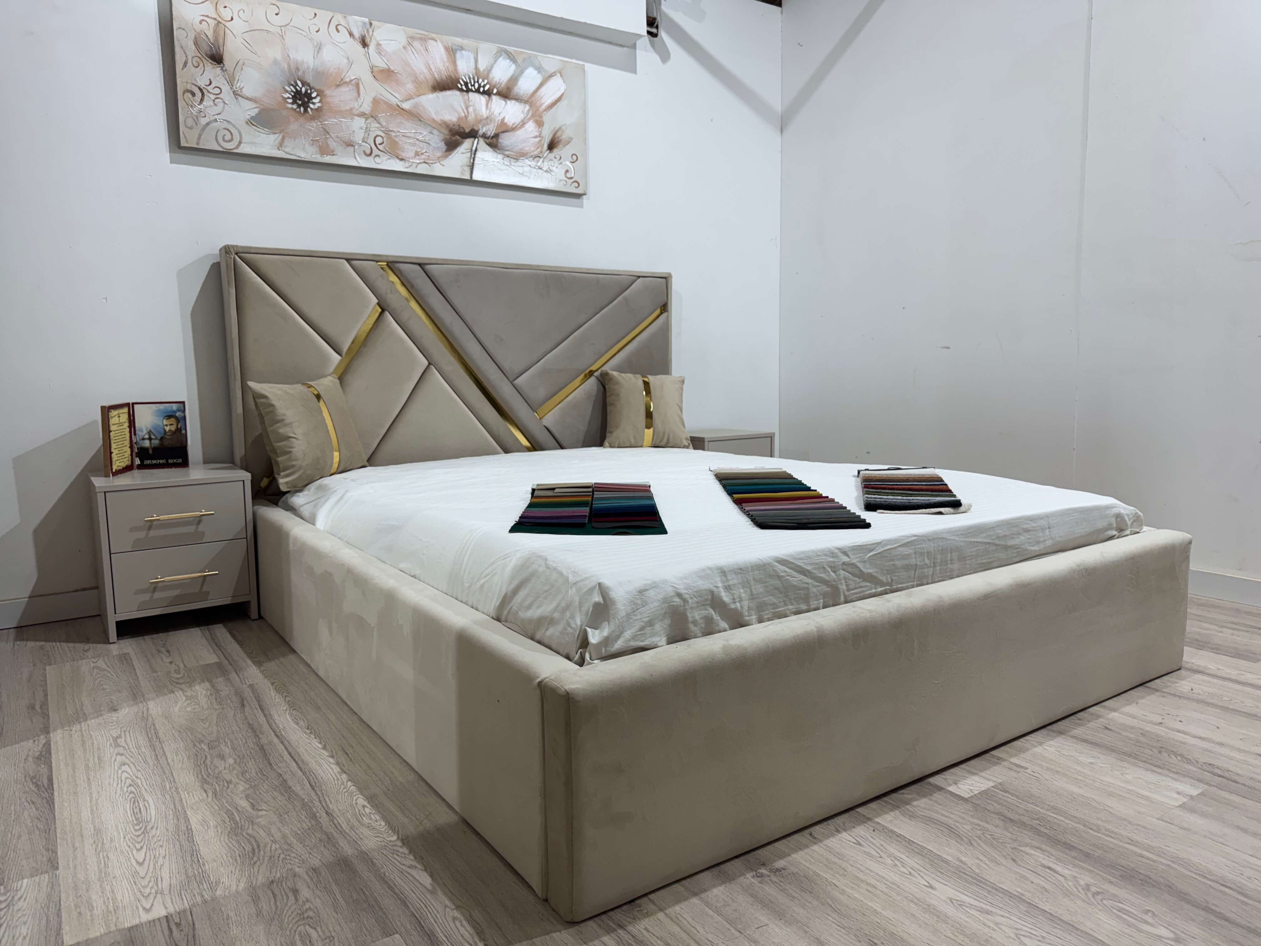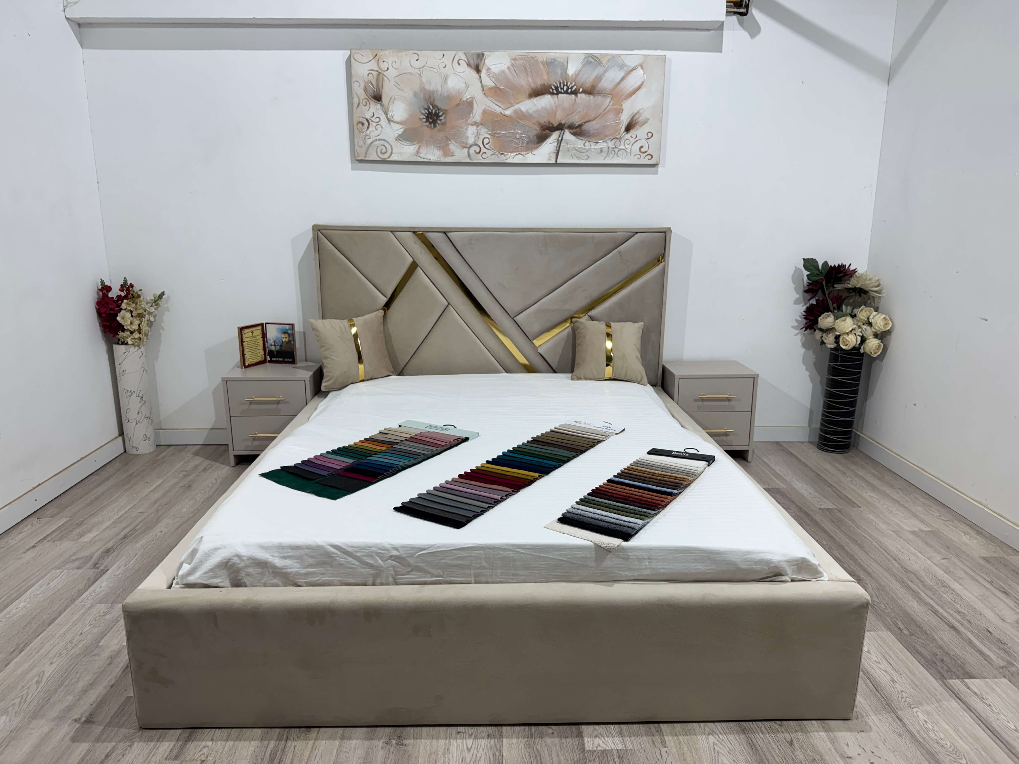 Patul tapițat din catifea premium aduce eleganță și confort în dormitor. Este prevăzut cu somieră metalică rabatabilă și ladă de depozitare generoasă, ideală pentru lenjerii, pilote sau perne. Structura solidă din lemn și PAL garantează rezistență în timp.