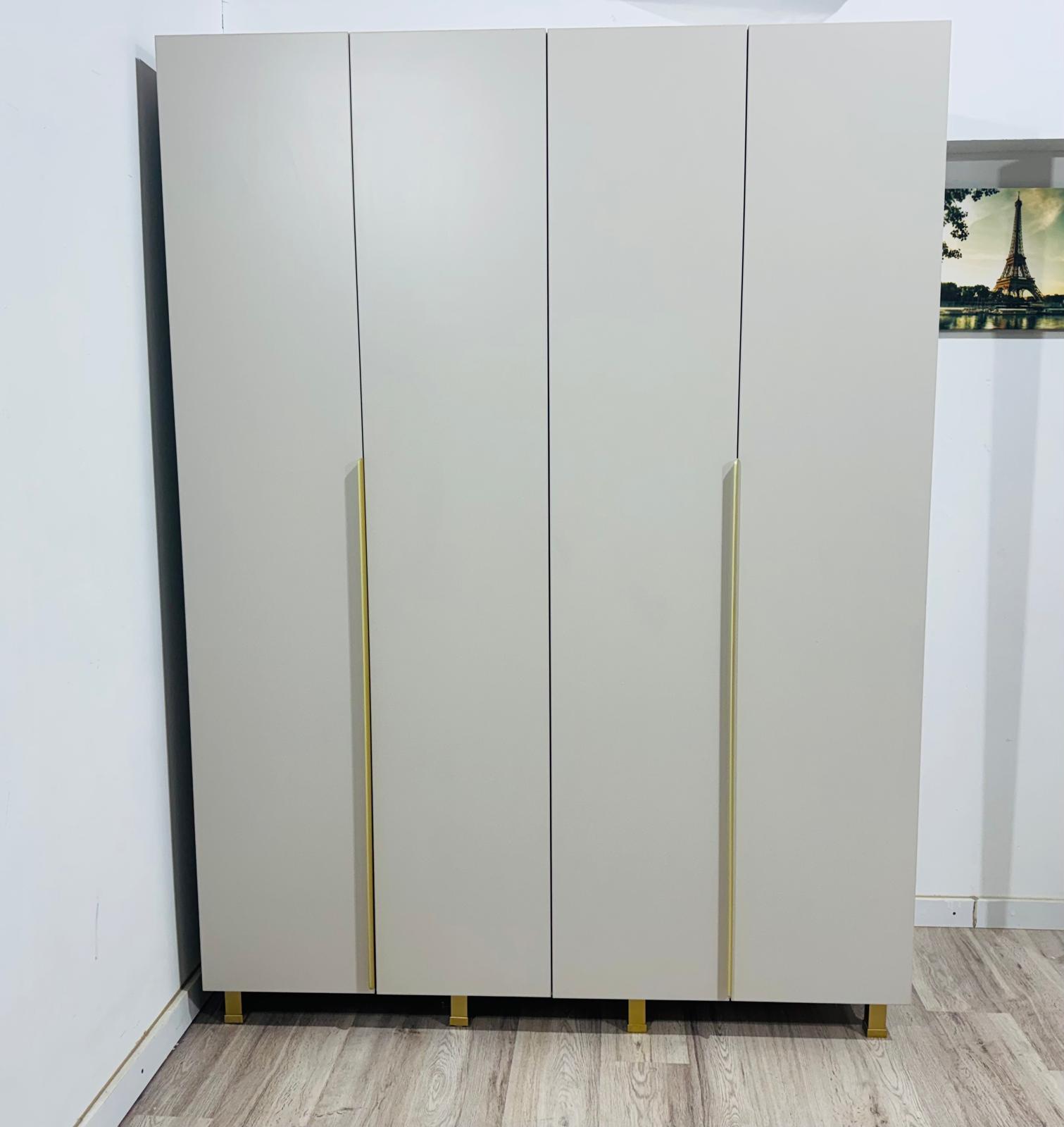 Dressingul cu înălțime de 215 cm, lățime de 160 cm și adâncime de 50 cm este compact, dar foarte bine compartimentat. Cele 4 uși din PAL mat de 1,8 cm grosime oferă un aspect modern și uniform, iar sistemul de închidere silențioasă asigură confort zilnic. Interiorul este organizat eficient cu bară pentru umerașe și polite, pentru haine, accesorii sau cutii.
